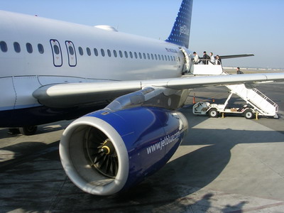 和专科同学Gary聊到 3 点多才睡, 早上 7:00 起床。 还好 long beach air port 离他宿舍超近, 不到 15 分钟就到了。 超小的机场,只有2层楼, 从入口走进去转个弯通过安检就到停机坪了, 然后走上楼梯直接上飞机, 第一次这样没经过空桥上飞机。 上了飞机的那一刻起, 我知道今后的旅程就只有我和我的三支脚好朋友了(相机脚架)。