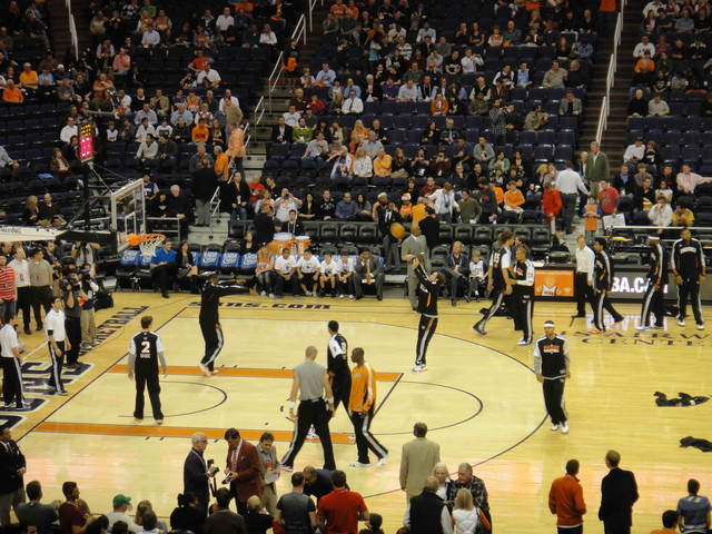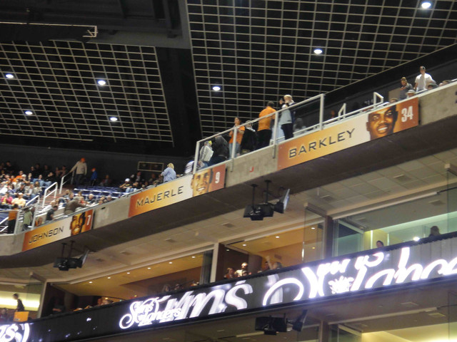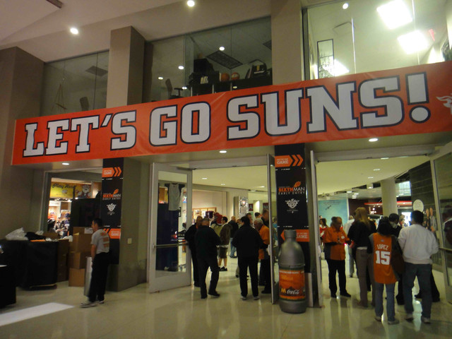 比賽是晚上 8:30 開始,6:30 可以進場,6 點出頭就有人開始在排隊了。上次來的時候主場還叫做 America West Arena,這一次已經改名叫 U.S. Airways Center。