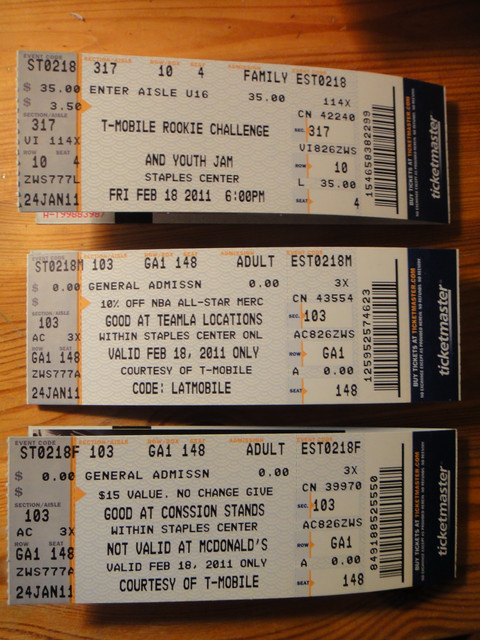 Ticketmaster 寄來的票,最上面是入場卷;中間的是買 All Star 商品的 9 折卷;下面的 coupon是在任何攤位可以兌換 15 USD 的食物或飲料 (麥當勞除外)。