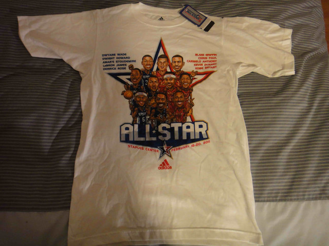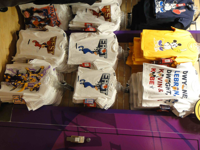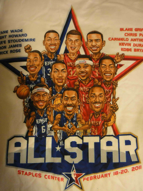 球員漫畫造型 T-shirt (我想這一場比賽應該是這輩子唯一看的一場明星賽了。穿在身上來看球的 All Star Logo T-shirt 是 NBA 官網剛發售 All Star相關商品時買的,那時候完全不收運費;這一件漫畫造型 T-shirt 則是在商店用折價卷買的)