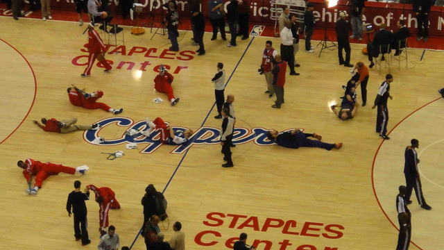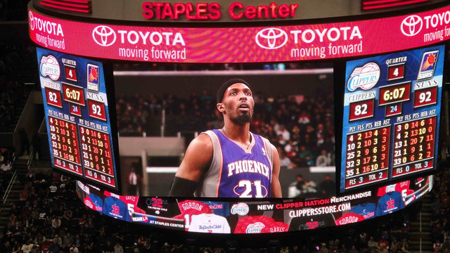 隨著球季接近尾聲,這也是我本球季最後一場 NBA 比賽了,不知道下一次再看比賽是何年何月了。雖然出門時下著傾盆大雨,褲管和鞋子都濕了,還是澆不熄我去 Staple Center 為太陽隊加油的熱情。在此場比賽前,Frye 和Nash 的受傷缺陣讓 Suns 在過去五場比賽只有四勝一敗的戰績,西區排名一度變成第 11,雖然這場比賽兩個人都可以上場,不過替補控衛 Brooks 此場又被聯盟禁止出賽,所以還是抱著忐忑不安的心情來看球,希望可以留下美好的回憶。