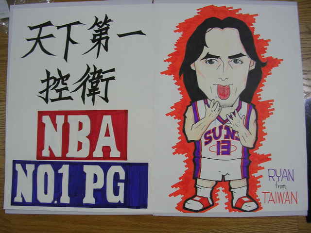 2005/11/1 Mavericks@Suns (L / 111: 108) 工作了幾年總算存夠了錢,很衝動地上網買了球票和訂了機票就一個人殺去鳳凰城看球了。去之前還花了一點時間做了一個 Nash 的大海報,還故意做摺疊式的方便攜帶。最難忘的是除了看到球迷等待半年多的開幕賽,還看到 2 次延長賽,看完比賽都超過凌晨 12:00 了,很誇張。那是我第一次看到 Nash 和 Marion,同時也運氣很好地上了國內的緯來電視轉播。最遺憾的是在主場輸球,開啟我的主場魔咒。另外就是 Stoudemire 整季報銷,無緣看到他一面。