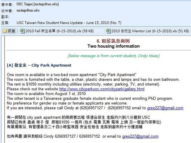 學校網站上每個月定期 post 的租屋公告,點進去還會有 link to photos,還有連絡的 e-mail。