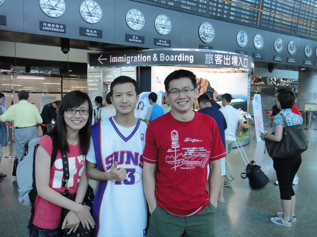 確定文件無誤之後,官員看到我身上穿Phoenix Suns 太陽隊籃球背心,就跟我開玩笑,說他可以因為我穿這件背心送我回台灣,我只好很狗腿地跟他說恭喜 LA Lakers 湖人隊拿到今年 NBA 總冠軍。接著他問我為什麼會喜歡 Suns,我說因為他們沒有拿過冠軍,他就笑著說: So you are the underdog guy! 然後就讓我順利通關,真是好險!
