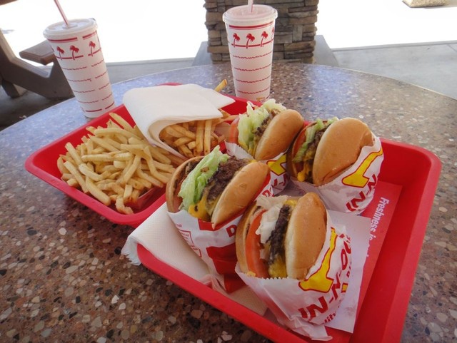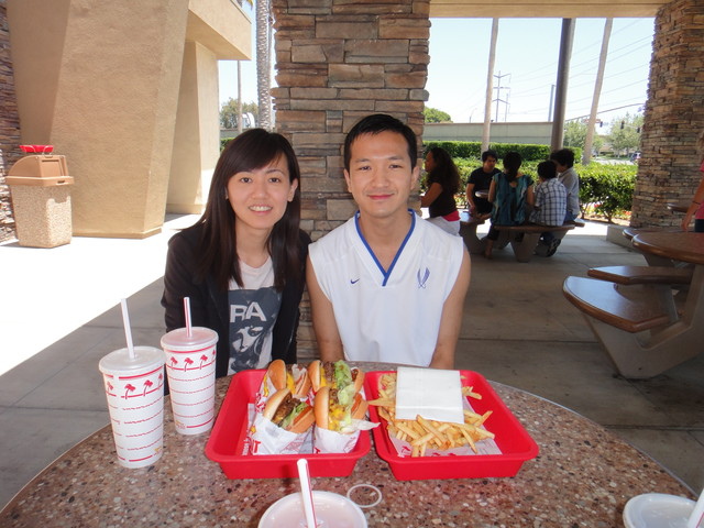來美國的第一頓速食就是獻給懷念的IN-N-OUT,上次來吃過一次後就念念不忘。這是在加州、亞歷桑納州和內華達州才有的連鎖漢堡店,口味雖然不多但是非常好吃。漢堡皮是有烤過的,咬起來很有嚼勁,牛肉更是美味。