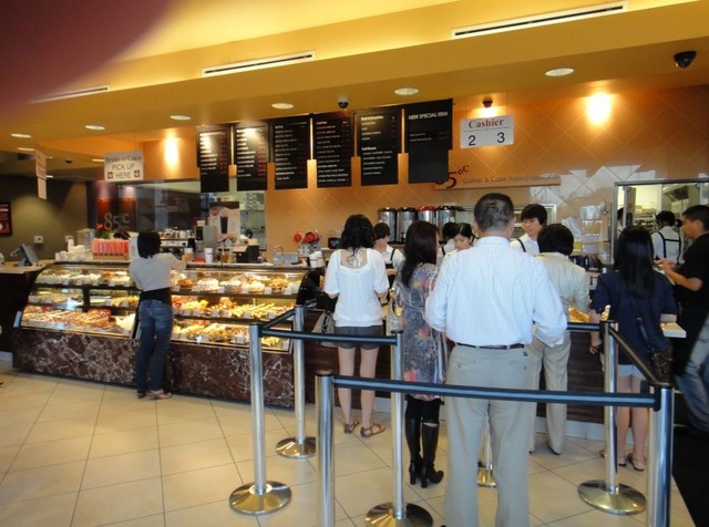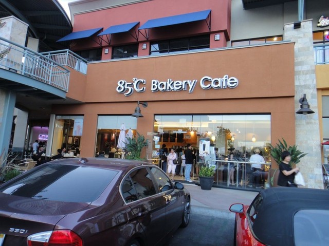 這家就是整個加州唯一的「85 度C 」店面,之前在台灣的新聞報導上有看過,聽說平常週末人滿為患,排隊排到爆掉。還好今天運氣還不錯,沒有等很久。其實店面擺設跟台灣差不多,也是有櫃檯和蛋糕西點櫥窗,比較特別的是旁邊還有附設麵包店。