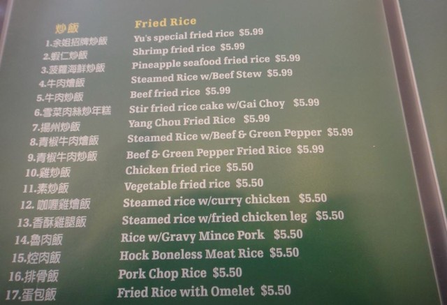 LA 的東西到底有多貴? 有圖有真相,這是表妹口中比較便宜的中式餐廳,炒飯一份炒飯或者一碗麵5.99 USD,再加 8.75% 稅,還有一點小費,就已經超過 200 NTD了。