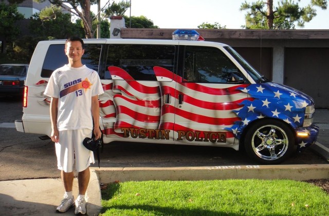 這是 Tustin City 的警車,有夠騷包! 說是 Obama 的遊街車也不為過。