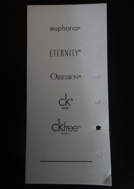 香水試紙,旁邊可以把小洞摳下來,這樣就知道自己試用的是哪一款的香水
