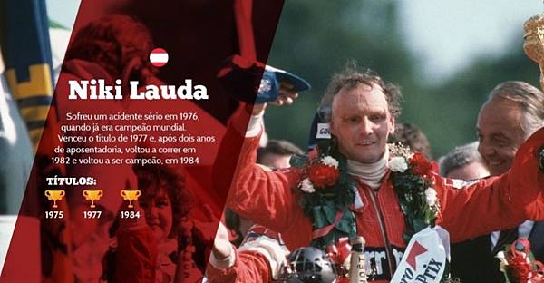 Niki Lauda於1949年出生於奧地利頗有名望的Lauda家族,從12歲起就對駕駛產生極大的興趣,不管是祖父或來訪的客人總是讓他當泊車小弟,不過由於不愛念書,在高中就留級兩次,父母只好把他送到修車廠做學徒。在19歲時Niki第一次參加賽車比賽就贏得亞軍,接著又不顧父親反對在歐洲盃賽事奪冠,後果就是被逐出家門,同時正式展開賽車手的生涯。