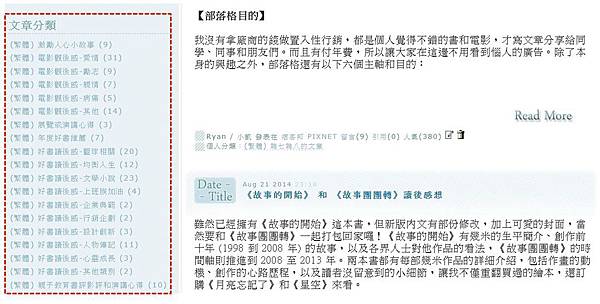 2) 直接進入痞客邦的「Ryan / 小凱的部落格」(http://ryanhuang13.pixnet.net/blog),視窗往下拉之後,在左側文章分類可看到各類別文章索引。