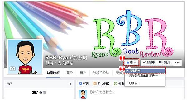 1.確定自己能收到通知:第一個步驟是按「讚」,第二個步驟是把滑鼠移到「讚」的按鈕,會看到下拉式選單,並出現「接收通知」,大家記得勾選「接收通知」喔!這樣我的每一次更新,Facebook會貼心的提醒大家,而不會按了「讚」卻沒辦法接收最新動態的糗事發生~