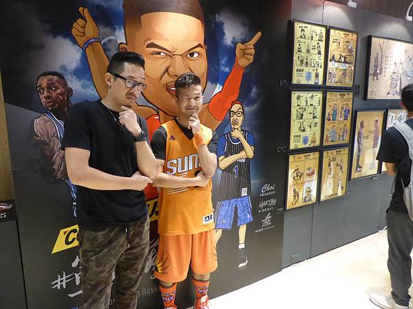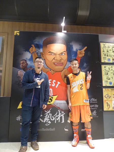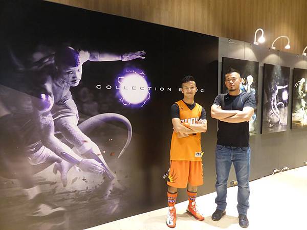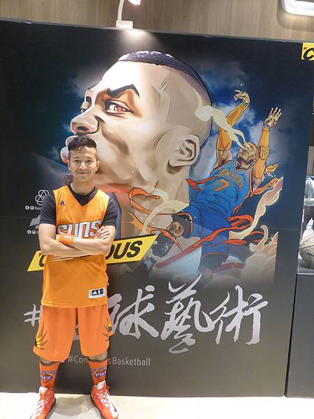 專程來看 NBA 展覽當然要好好打扮!除了太陽隊客場橘色球衣、球褲和襪子,護腕和鞋子也都是橘色的。(有人說像會走路的橘子或木瓜 XD)