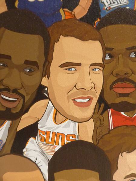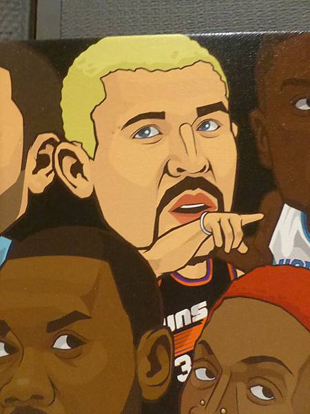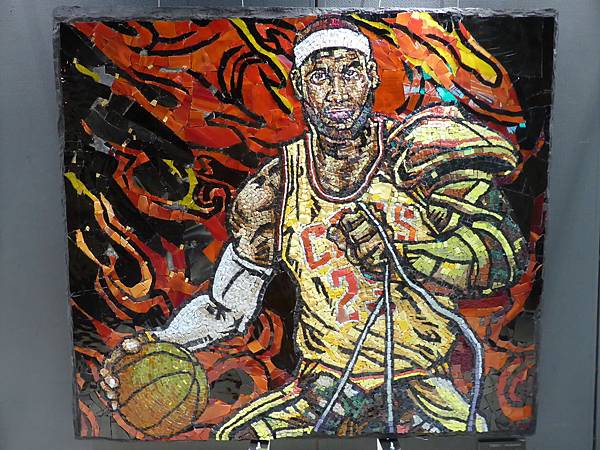Roger 和 Vince 同為《Conscious 意識》籃球藝術展的元老創辦人,他畢業於美術系油畫組,當他在紐約的麥迪遜花園廣場目睹第一場 NBA 球賽之後,決定要把球員結合美漫風格,繪製美術作品,也是 XXL 籃球雜誌的專欄畫家之一。 人很斯文,但作品有強烈的個人風格。雖然 4/9 北上台北在展覽沒看到本人,但 4/16 我跑去華山文創園區找他,了解馬賽克鑲嵌技法,替原本的文章補充內容。