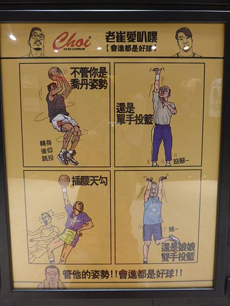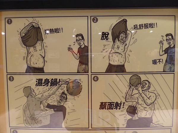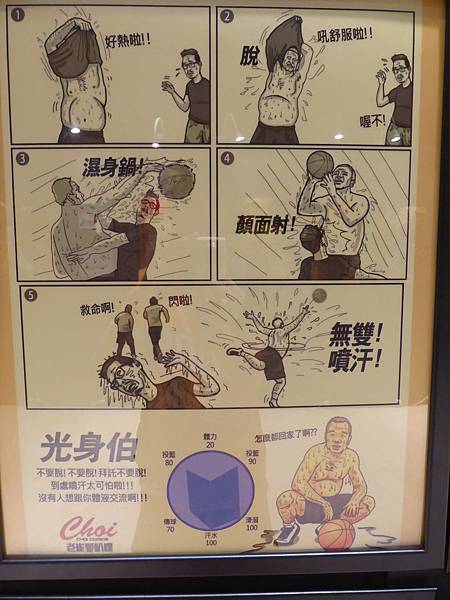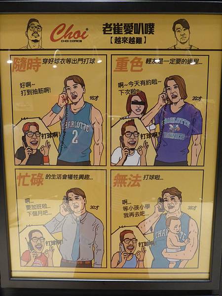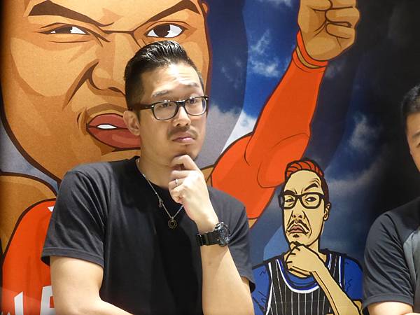 讓我很訝異的是他畫四格漫畫的初衷,他說自己喜歡在上大號時看漫畫,挑長篇漫畫坐太久會便秘,短篇漫畫最適合,因此作品以隨時能結束的四格漫畫為主。至於創作主題是生活化的在地籃球,平常他會跟朋友 (松山哥等) 相約打球,從過程中得到靈感。