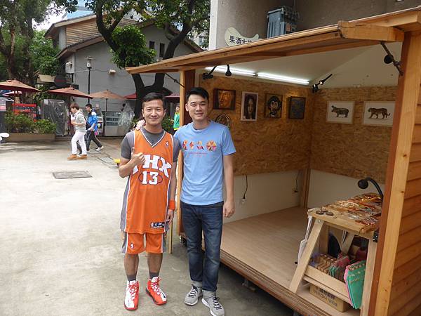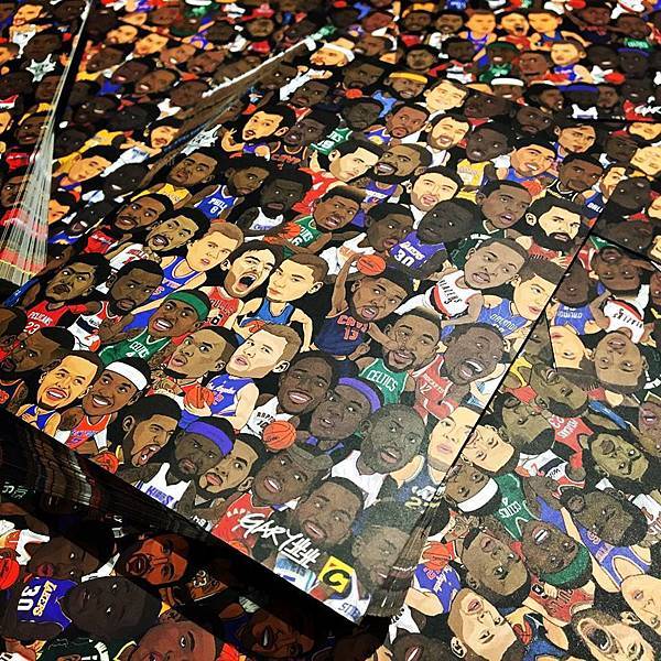 光光本人話不多,需要球友主動一點提問,他就會侃侃而談自己的作品。最早是投稿 XXL 籃球雜誌的 NBA畫作,後來成為特約畫家,畫風以 Q 版肖像為主,繪製時間較短,但一點也不簡單,能夠用最少的線條勾勒出球員的神韻。他的優勢在於作品很親民,被接受度很高,輕易跨越國界的隔閡,加上產出速度快,可以多畫好幾位球星。
