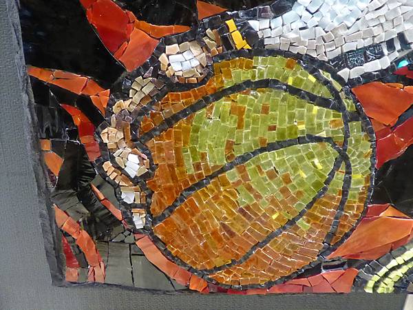 馬賽克鑲嵌光是一片白色指甲就要用好幾塊「琺瑯玻璃」拼成,籃球也靠不同色階的「琺瑯玻璃」組成