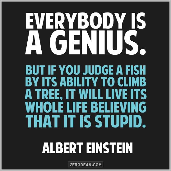 Albert Einstein:Everyone is a genius but if you judge a fish by its ability to climb a tree, it will live its whole life believing it is stupid. / 愛因斯坦:每個人都身懷天賦,但如果用會不會爬樹的能力來評判一隻魚,它會終其一生以為自己愚蠢。 ~ 《Part 2:創值》