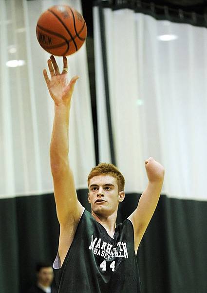 於是 Kevin 在畢業那一周飛到曼哈頓學院,幾個月之後被通知校方願意給他全額獎學金,學費和食宿費用全免,他終於美夢成真,成為第一位在大學體育協會第一級出賽的身障球員。