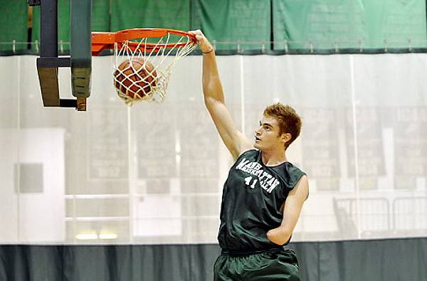 就在學年度和招募季節都快結束時,紐約曼哈頓學院 (Manhattan College) 的 Barry Bohrssen 教練正在為挑選球員而苦惱,雖然他過去就在追蹤 Kevin 的球技表現,又有福克合一軍校教練 Fletcher Arritt 的推薦,仍然猶豫不決是否要聯絡 Kevin。此時校長正好看到紐約時報的一篇報導,描寫 Kevin 熱心輔導因車禍失去手臂的女孩,於是到籃球隊辦公室找 Bohrssen,請他考慮看看。 Bohrssen 當然不會錯過這個千載難逢的機會,兩人當場決定邀請 Kevin 前來面試。另外, Franklin 和 Bohrssen 有二十五年的老交情,也跟他保證 Kevin 一定會對球隊有所貢獻。