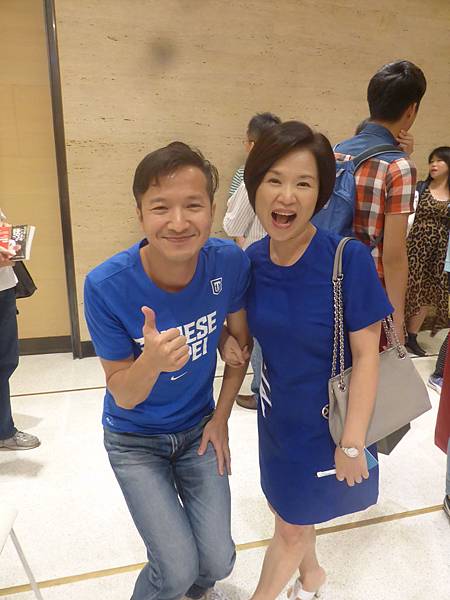 不愧是資深廣播主持人,咬字最清楚,音調最好聽,也很適合當女主播。另外,不可能不注意聽她說話,冷不防音量就瞬間提高好幾倍。講話很幽默,我要求合照時還請我要蹲低一點。