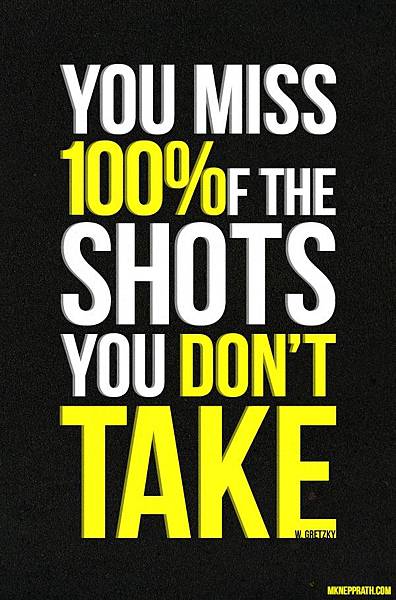 You miss 100 percent of the shots you don't take. ~ Wayne Gretzky