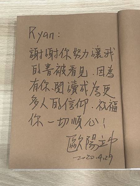6.在五月六日意外收到歐陽老師致贈的親筆簽名書,他根本還不知道我會買書和寫感想,就已經寫好和寄出新書給我了。